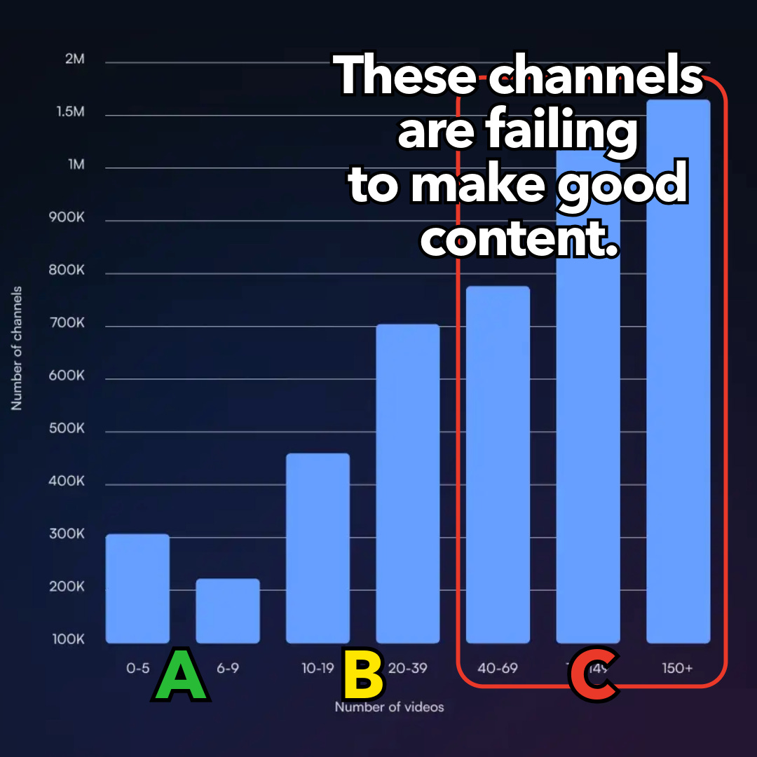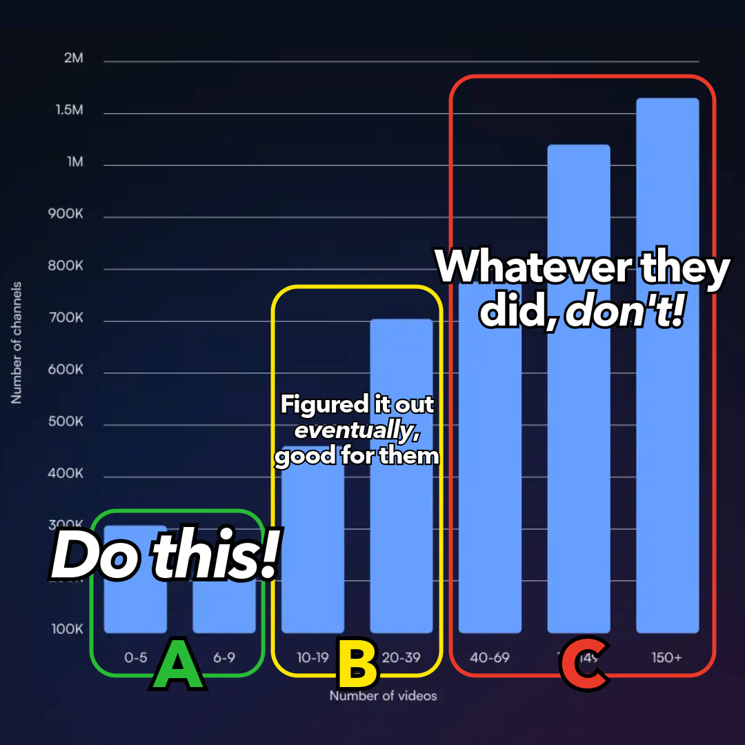 Pay attention to the content, not the strategy. Maybe Group A channels are being consistent, maybe they aren’t. Maybe Group C channels are being consistent, maybe they aren’t. For you, that doesn’t matter. Before you even worry about that, you’ve gotta learn how to make your content consistently better.
